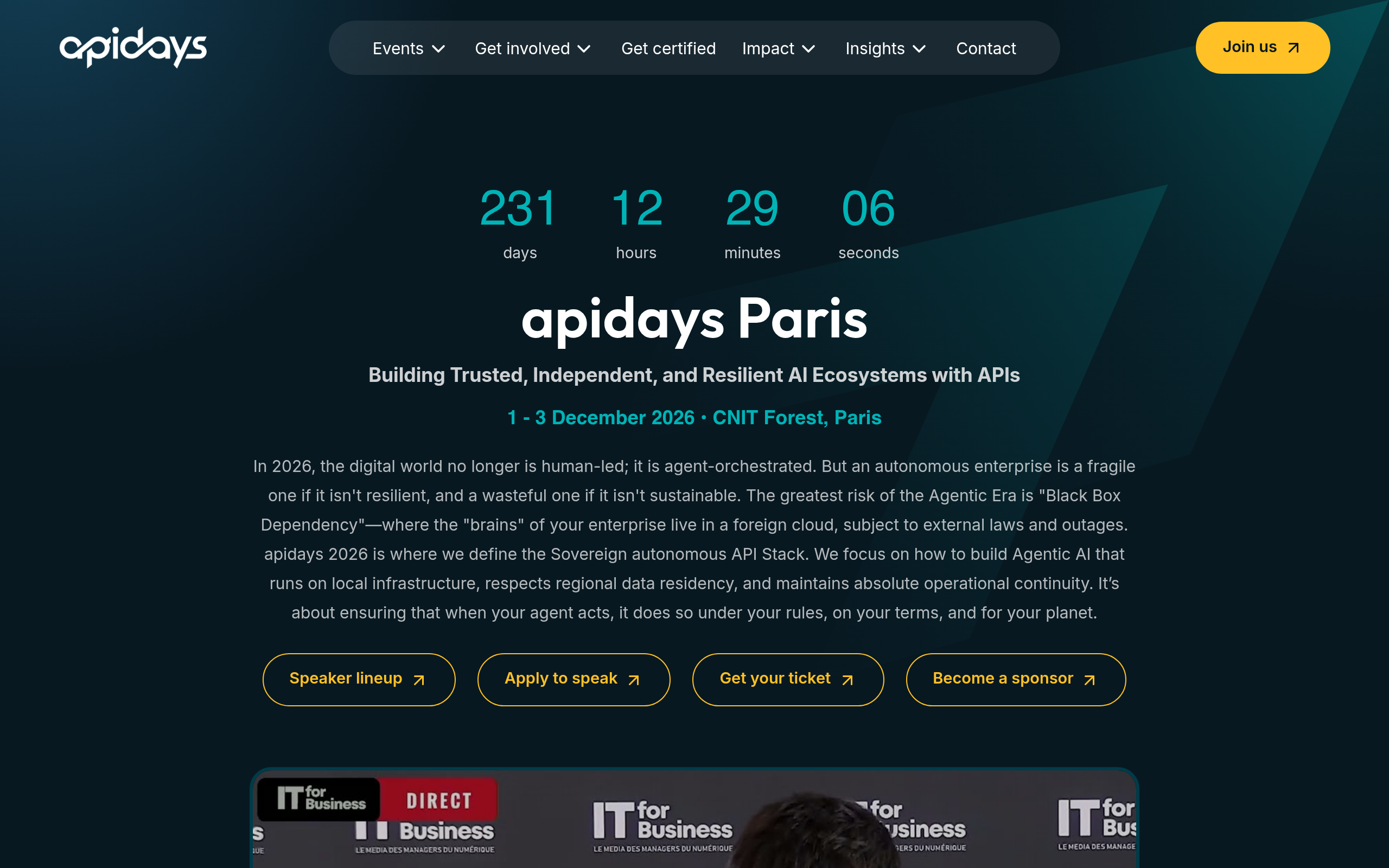 APIDays Paris est un événement majeur dédié aux dernières avancées et innovations de l'économie des API. Se déroulant dans le cadre emblématique du Cnit La Defense à Paris, cet événement aura lieu du 30 novembre au 3 décembre 2026. Les participants auront l'opportunité unique d'échanger avec les leaders du secteur, de participer à des ateliers enrichissants et d'explorer les technologies de pointe qui façonnent l'avenir de la communication numérique et de l'intégration.